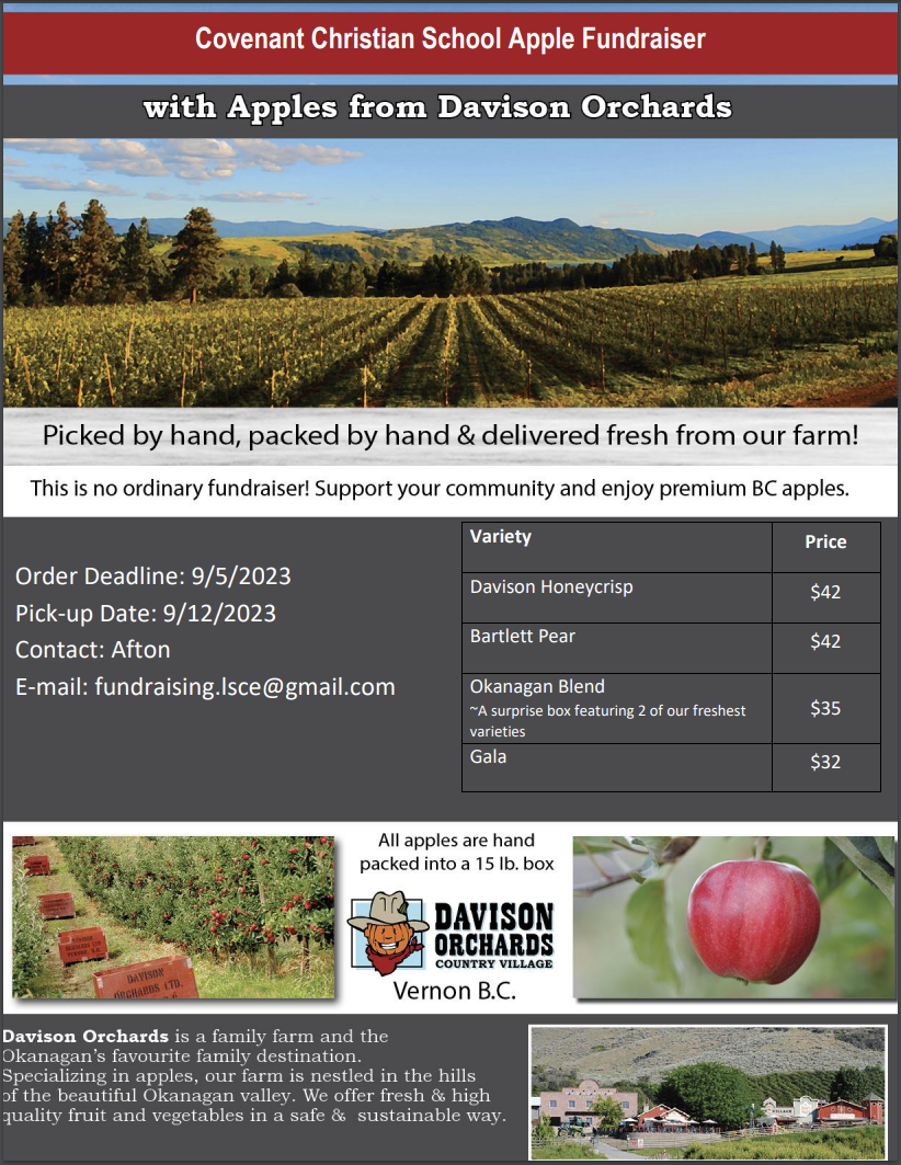 We are kicking off our fundraising this year with Davison Orchards Apples. See below for more information and click here to place your order.