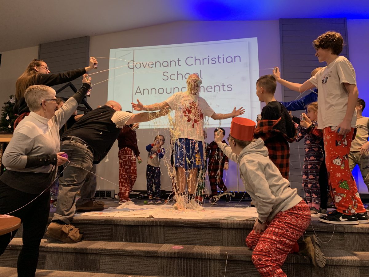 Thank you so much to everyone who supported our Christmas Food Drive! Our school goal was 400 pounds of donations, and we overwhelmingly surpassed it, totaling 782 pounds! Thank you for blessing our community! We also enjoyed a little added fun by getting to watch a student from each homeroom adorn Mr. Simmons with Silly String at Celebration! Merry Christmas everyone!