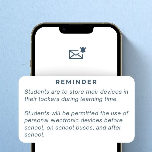 We would like to take a minute to remind our students/parents about our personal electronic devices policy. To help the office in making sure all students are safe and accounted for we would appreciate that parents ensure all communication to their child(ren) goes through the office. Thank you for your cooperation.