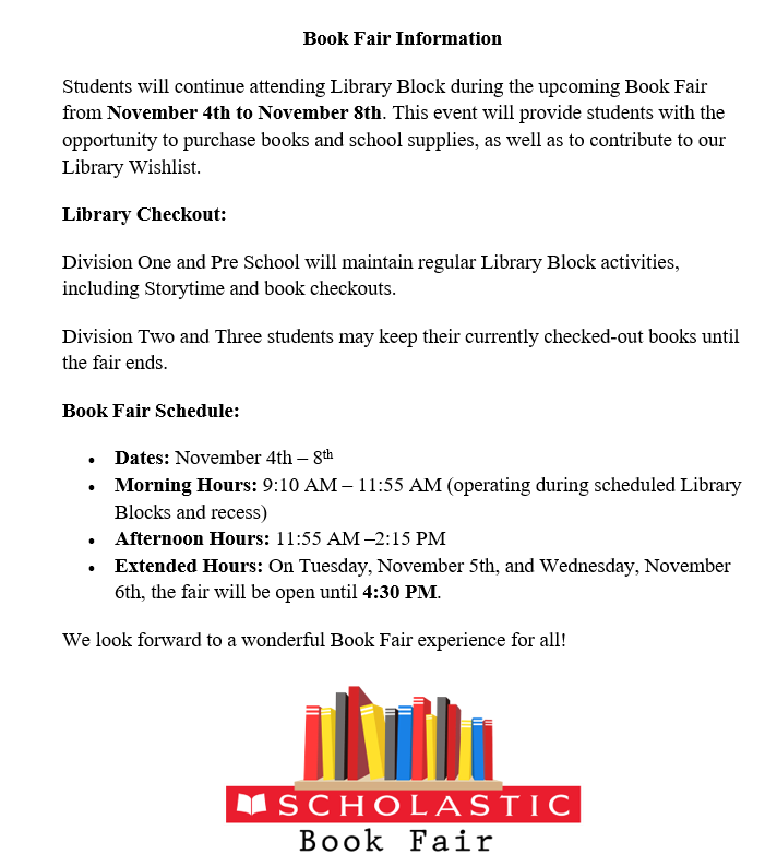 We invite you to sign up for our upcoming parent-teacher conferences on November 20-21st. Sign-ups are available through School Appointments, and each conference will be 15 minutes long. For more in-depth or specific concerns, please note that teachers should have already reached out to you.
