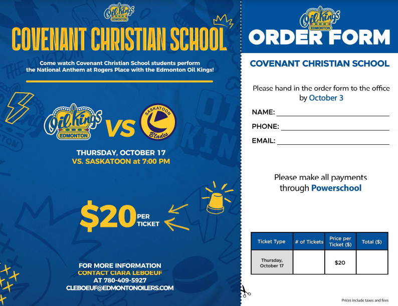 The excitement continues to build as we prepare our songs for our chance to shine His light at Rogers Place. Our Gr. 5/6 choir will be singing “The Good Ol’ Hockey Game, Yes I WIll and the Canadian anthem”. Only a few days away from taking the stage! Families who purchased tickets (over 200 tickets sold!!) will receive “hard copies” from the school soon. More information to follow.